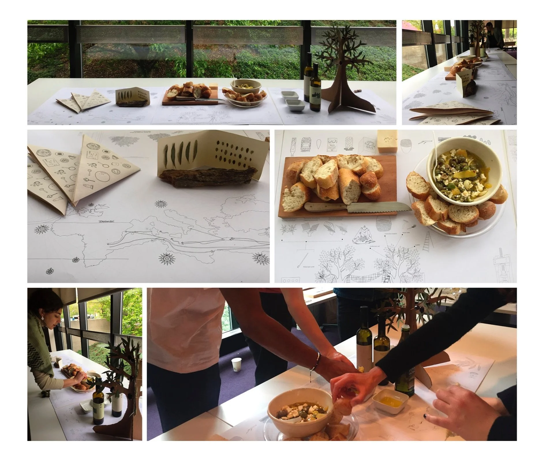 The research focused on the cultivated olive tree, Olea europaea, and culminated in a gathering where the final drawings were presented over a shared meal. Collected over a common surface, the table setting renders clear for the meal participants the larger systems that figuratively and literally put the meal on the table. Through making visible the invisible, the experience encourages us to consider the link between the recipes we follow, the food we consume, and the and the geography we inhabit. The links that bind these together create the landscapes that we eat.